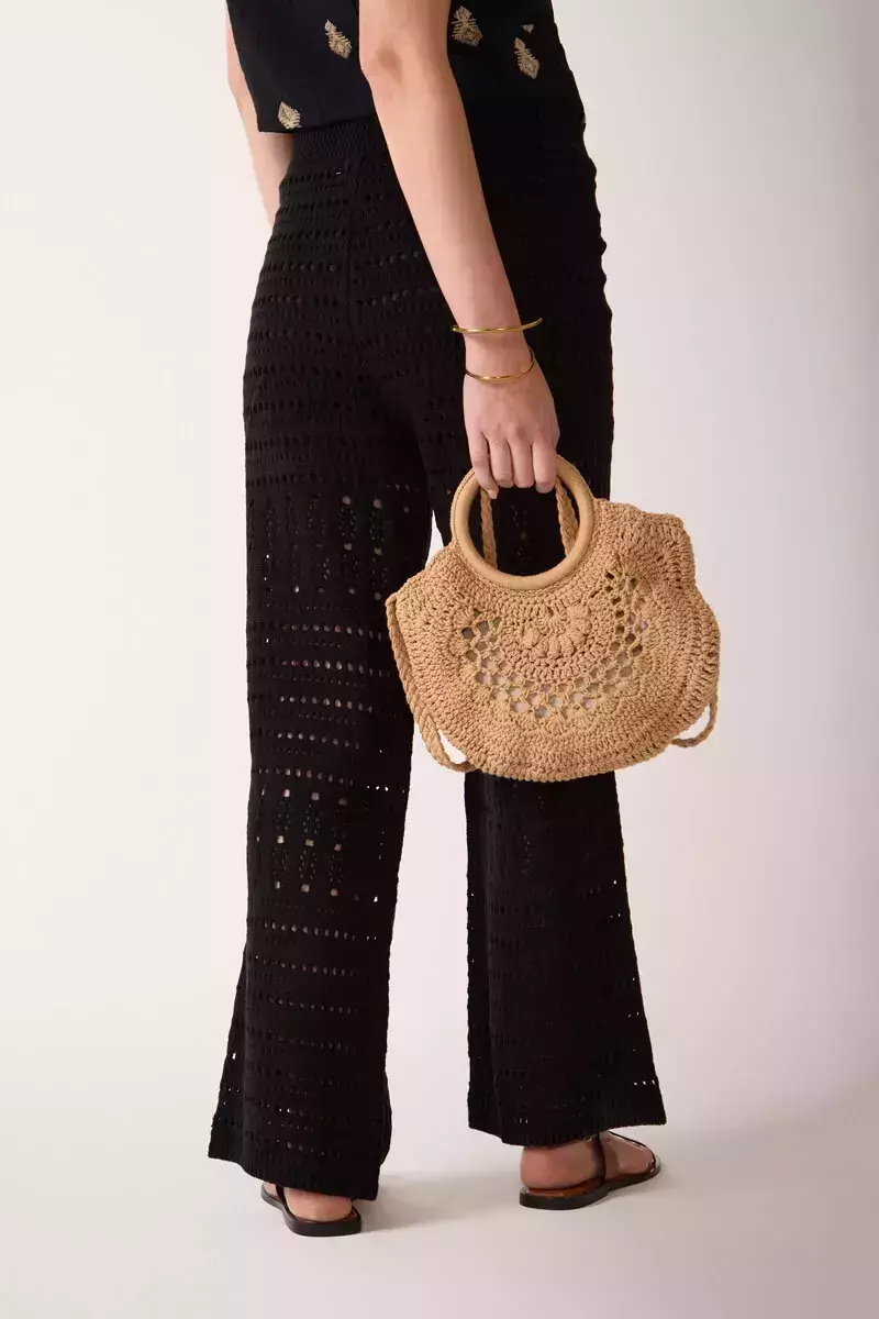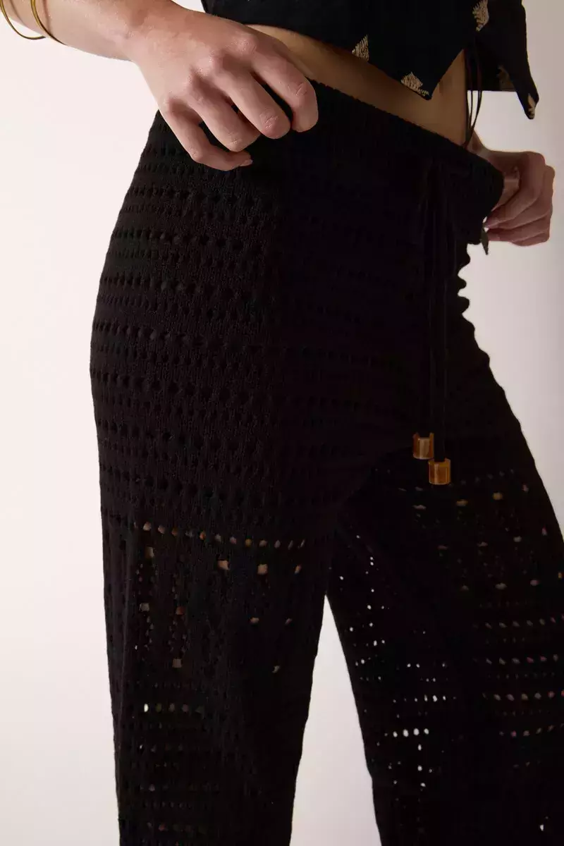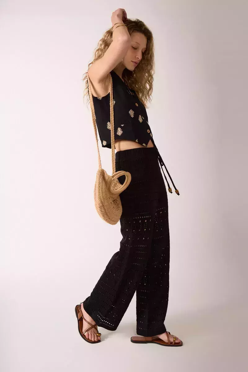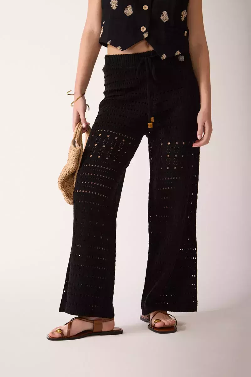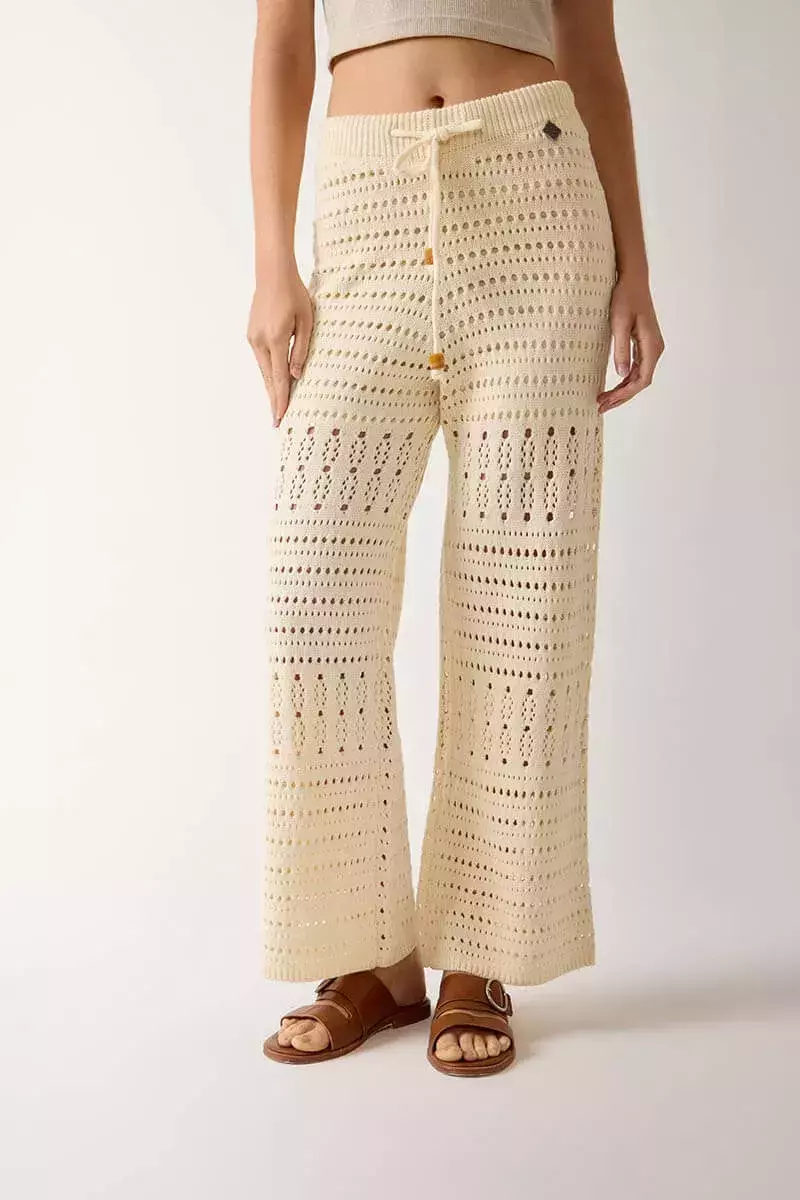 Pantalón tejido de suave textura, con forrería interna para mayor abrigo y confort. Su cintura ajustable con cordón y delicadas terminales carey aporta un toque de estilo y practicidad. Ideal para crear looks relajados, cálidos y con un aire sofisticado.