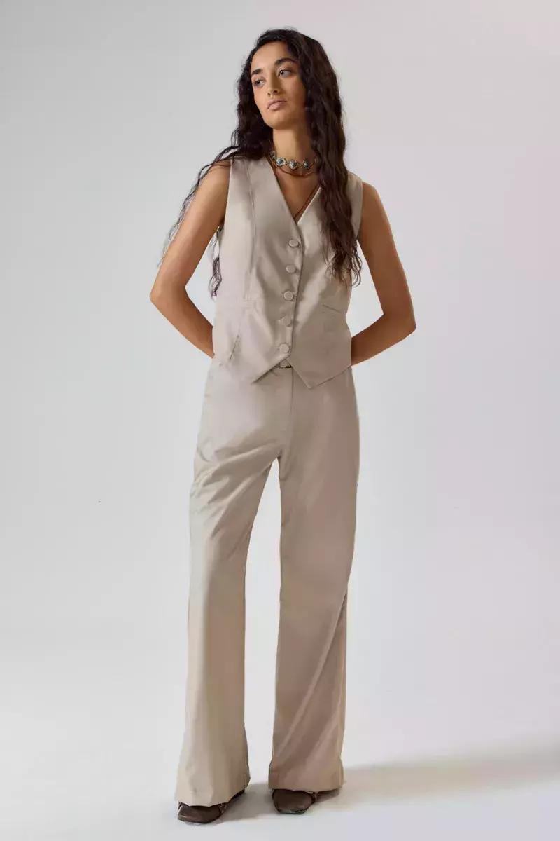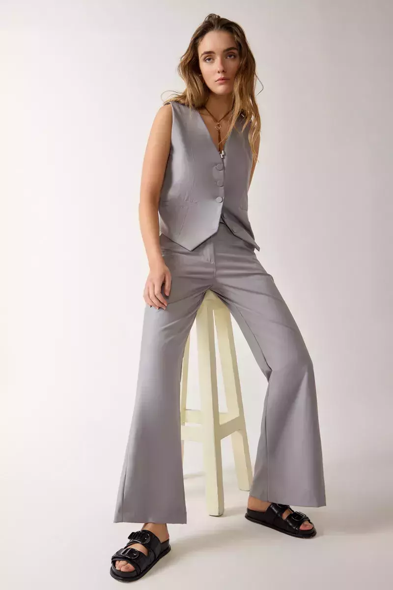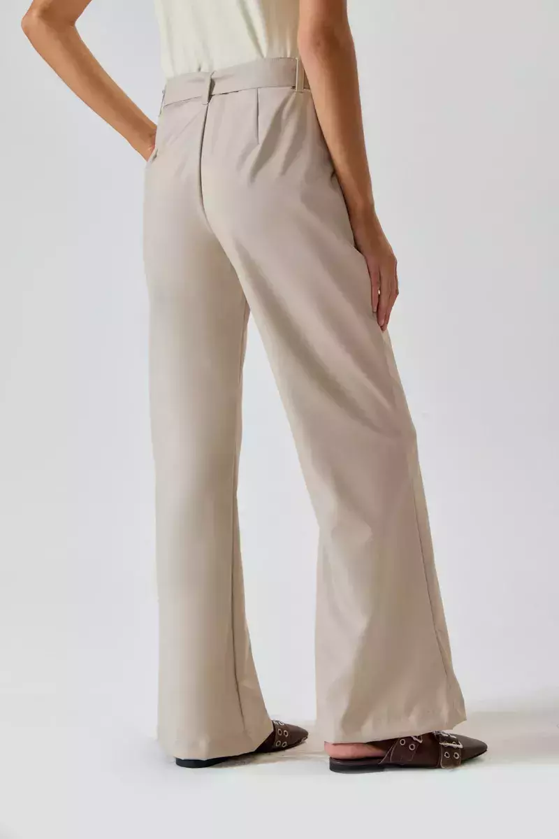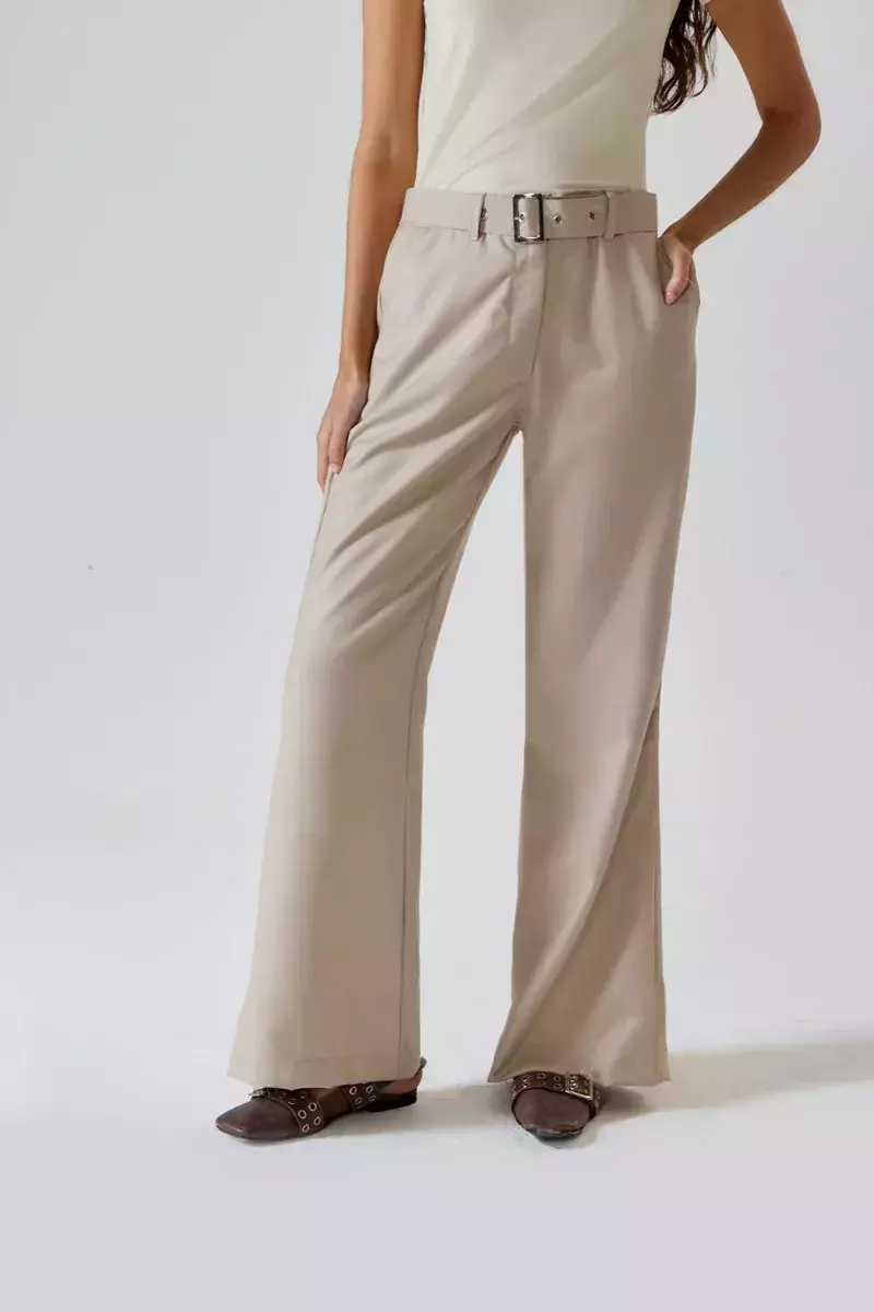 Pantalón sastrero de tiro bajo con calce skinny flare que estiliza y realza la figura. Diseñado con botón frontal y cinturón con hebilla que marca la cintura y suma un detalle sofisticado. Confeccionado en twill de viscosa suave y flexible, aporta comodidad sin perder estructura. Ideal para looks urbanos o de oficina con un toque moderno.
