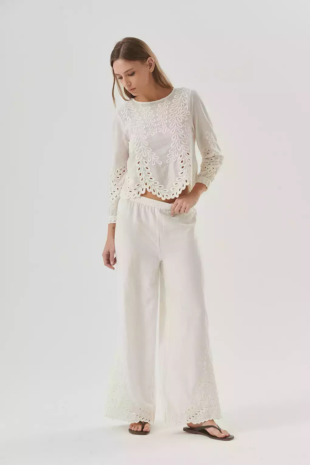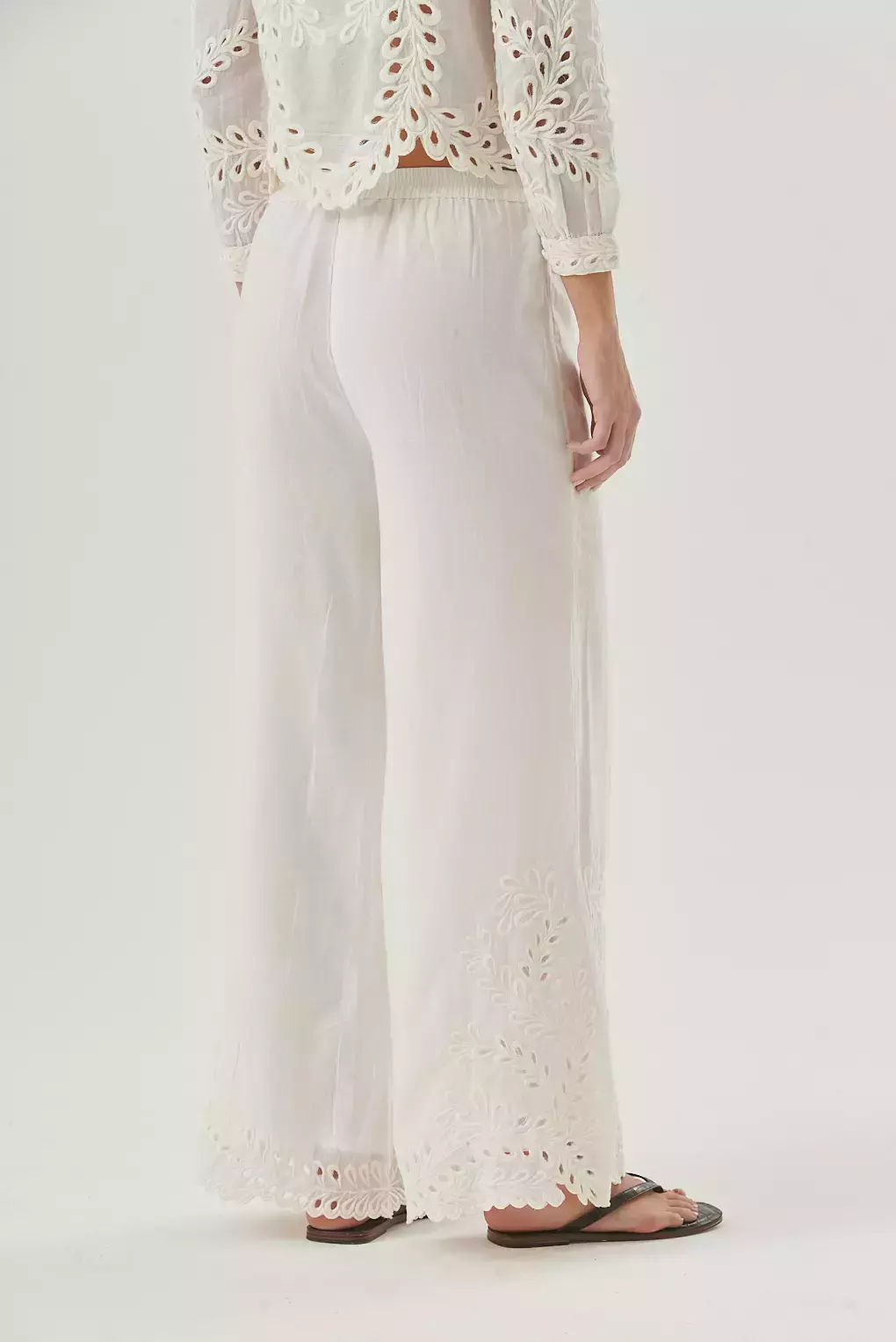 El Pantalón Rania es una prenda femenina y versátil, confeccionada en algodón para asegurar frescura y comodidad. Su diseño amplio de pierna ancha se realza con delicados bordados en el ruedo, que aportan un aire artesanal y romántico. Con cintura elastizada, combina estilo y practicidad, convirtiéndose en la opción perfecta para looks relajados de verano que no pierden sofisticación. Ideal para combinar con blusas livianas, tops o camisas, logrando un outfit boho-chic y distinguido.