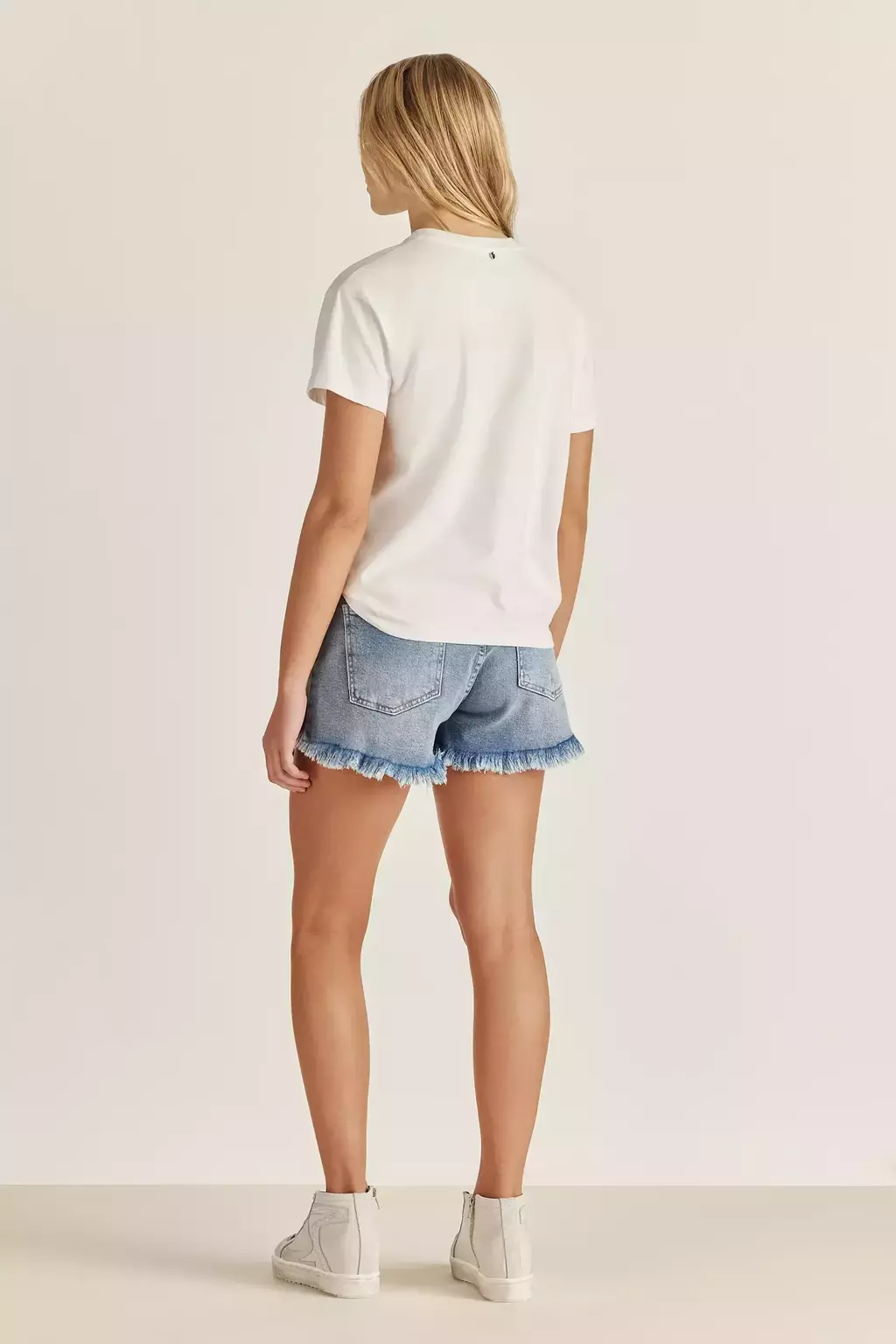 Remera confeccionada en tejido liviano de algodón con estampa exclusiva con foil de la temporada de Verano 26. El calce es relajado. En el escote trasero lleva un dije con el logo de la marca. Usala para un look Tucci muy audaz.