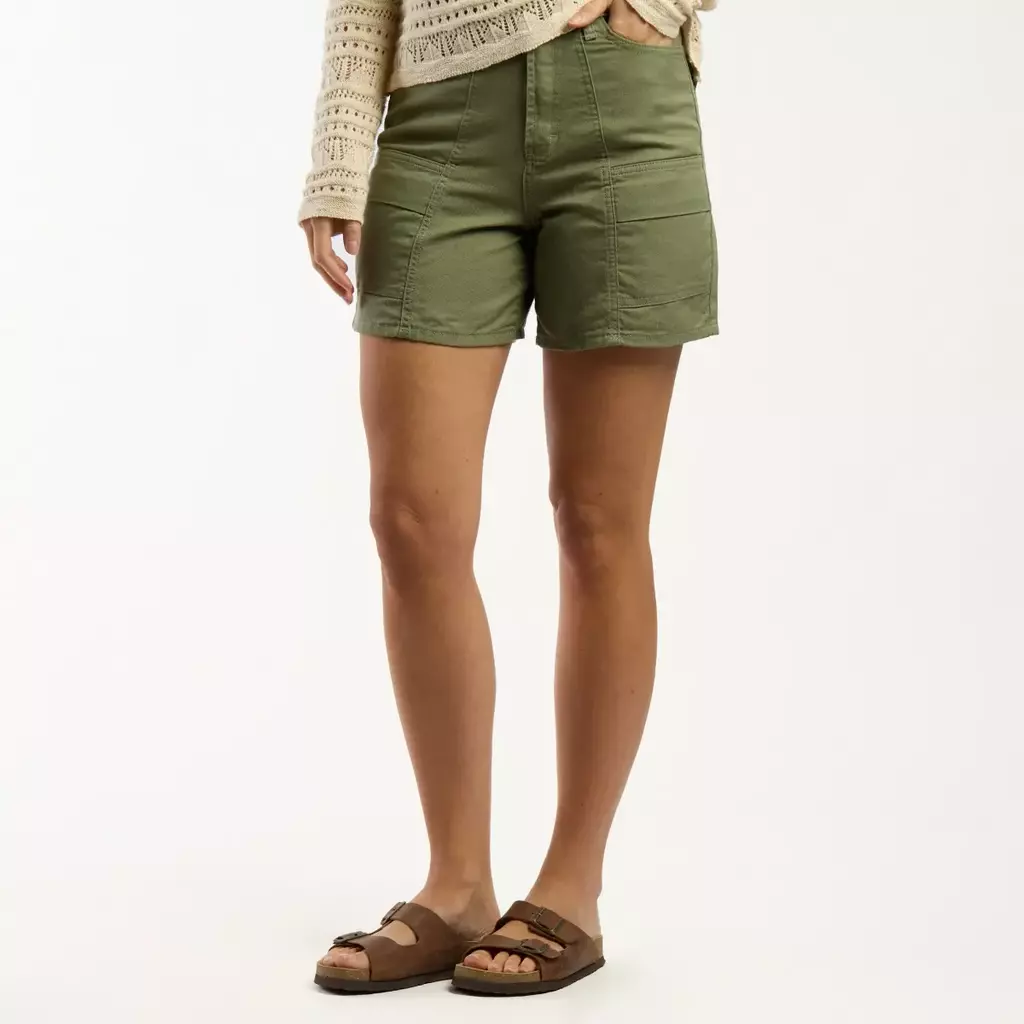 Short tiro alto confeccionado en denim. Avios color oro viejo. Diseño de 7 bolsillos: dos bolsillos jeaneros, un bolsillo relojero, dos bolsillos delanteros ubicados en recorte y dos bolsillos en espalda con solapa. Combínalo con tus prendas favoritas.